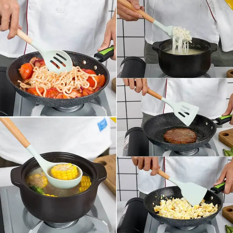لازمه ی داشتن آشپزخانه ای زیبا و کاربردی انتخاب هوشمندانه وسایل است. هر یک از ابزار های آشپزی در کنار کاربرد های گسترده در آشپزی روزانه، زیبایی فوق العاده ای دارند. سرویس کفگیر و ملاقه 12 پارچه یونیک لاو از جنس سیلیکون هستند و دسته آن از چوب بامبو ساخته شده که کاربرد زیادی دارند و در عین حال آشپزخانه شما را زیباتر می کنند.