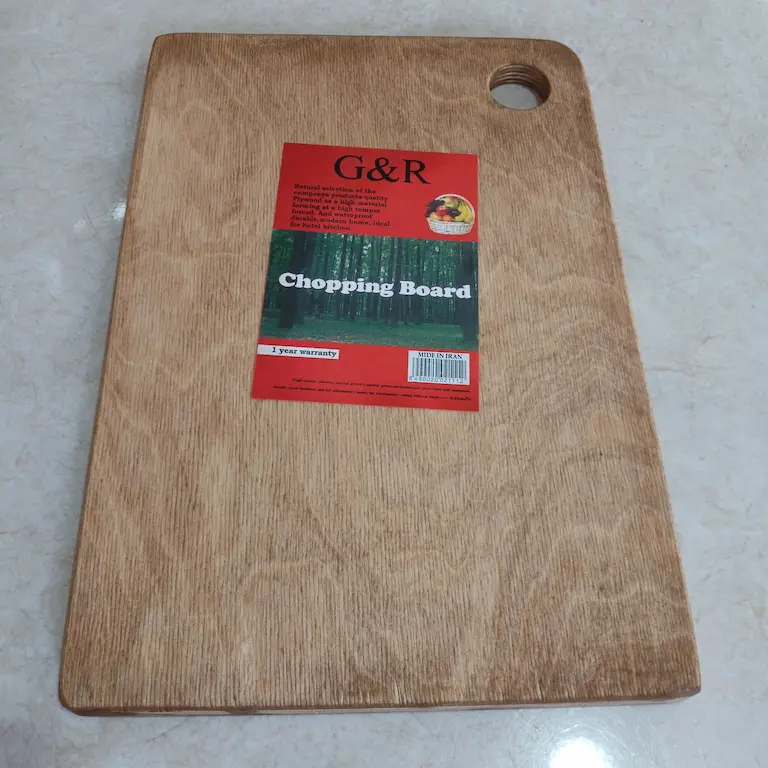تخته گوشت چوبی مدل G&R G1 یک تخته محکم جهت قرار دادن مواد غذایی و بریدن و قطعه قطعه کردن آنهاست. این تخته گوشت دارای قابلیت شستشو، سوراخ برای آویز و جابه جایی، ابعاد 24×35 سانتی متر و جنس چوب چند لایه با ضخامت 1.5 سانتی متر است.