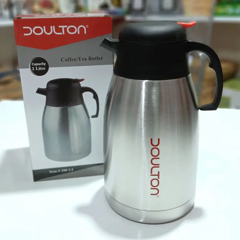 فلاسک دالتون مدل UJ 200 با ظرفیت 2 لیتر از جنس استیل مرغوب و ضد زنگ 18/10 ساخته شده و همچنین از فناوری خلاء گاز هم برای عایق کاری آن استفاده شده است و استفاده‌‎ طولانی‌ مدت آن را برایتان امکان‌ پذیر می‌کند. حفظ دمای نوشیدنی‌های گرم و سرد در فلاسک DOULTON امکان لذت‌ بردن از سفر و استراحت را برای شما فراهم خواهد کرد. جنس عایق داخل فلاسک چای و قهوه دالتون از استیل است؛ درنتیجه بدون نگرانی از تغییر رنگ یا زنگ‌ زدن، نوشیدنی گرم یا سرد خود را میل کنید. نوع خروجی آب این فلاکس ضامنی است و امکان استفاده‌ راحت‌‌تر آن را فراهم می‌کند. فلاکس استیل 2 لیتری دالتون با طراحی مناسب، همراه همیشگی شما در سفرهای خانوادگی خواهد بود.