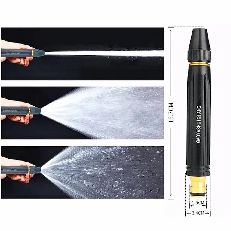 یکی دیگر از قابلیتهای مهم این نازل، انعطافپذیری آن در تنظیم الگوی پاشش است. این مدل مجهز به سری قابل چرخش است که به کاربر اجازه میدهد نوع خروجی آب را بهسرعت تغییر دهد. برای مثال، میتوان پاشش را از یک جریان سوزنی و متمرکز (مناسب برای تمیز کردن لکههای سخت) به یک حالت فوارهای و مخروطی (ایدهآل برای آبدهی گیاهان یا شستشوی سریع سطح خودرو با دامنه وسیع) تغییر داد. این قابلیت تنظیم، نازل GAOYASHUIQIANG را به ابزاری چندمنظوره تبدیل میکند که برای طیف وسیعی از فعالیتهای نظافتی و باغبانی در خانه قابل استفاده است.