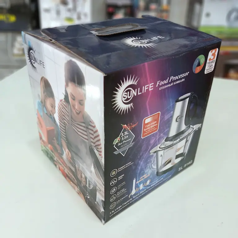 خردکن سان لایف مدل SL-914G یک دستگاه قدرتمند با موتور 3 سرعته و توان مصرفی 1800 وات است که به همراه یک کاسه پیرکس با ظرفیت 3.3 لیتر عرضه میشود. این خردکن از برند SUN LIFE مجهز به یک تیغه اصلی 6 پره استیل طلایی ضد زنگ است که با یک محافظ تیغه همراه شده است. این دستگاه کارایی بالایی در خرد کردن طیف گستردهای از مواد غذایی دارد؛ از جمله: انواع سیب زمینی و پیاز، انواع حبوبات، خشکبارهایی نظیر گردو، بادام و پسته، سبزیجاتی چون هویچ و فلفل، و پروتئینهایی مانند گوشت مرغ و ماهی. علاوه بر این، برای سهولت استفاده، این خردکن برقی شامل لوازم جانبی ضروری است: دسته برای جابجایی آسان، واشر لرزشگیر برای زیر کاسه جهت کاهش لرزش، شفت فلزی در محل اتصال موتور و تیغه برای دوام بیشتر، کاردک تمیز کننده و پره مخصوص همزن مواد است.